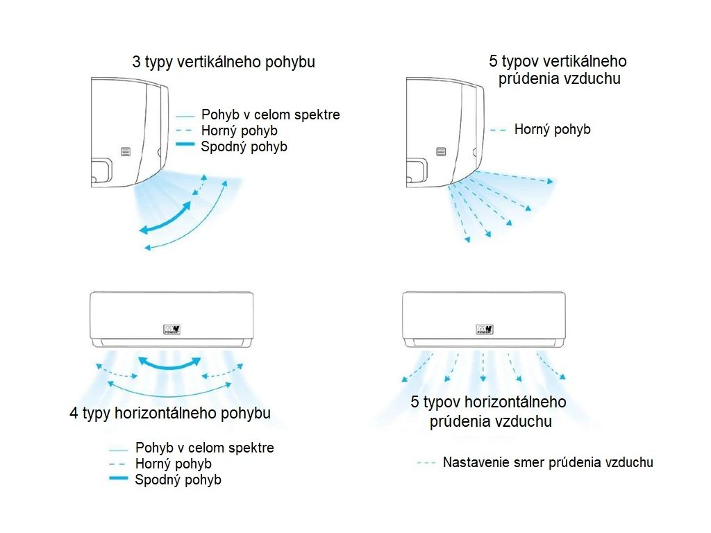 Funkcie: 4D prúdenie vzduchu, režim „I‑Feel“, Anti‑Cold Air, ECO režim, detský zámok, auto‑čistenie filtra, 6-stupňový ventilátor